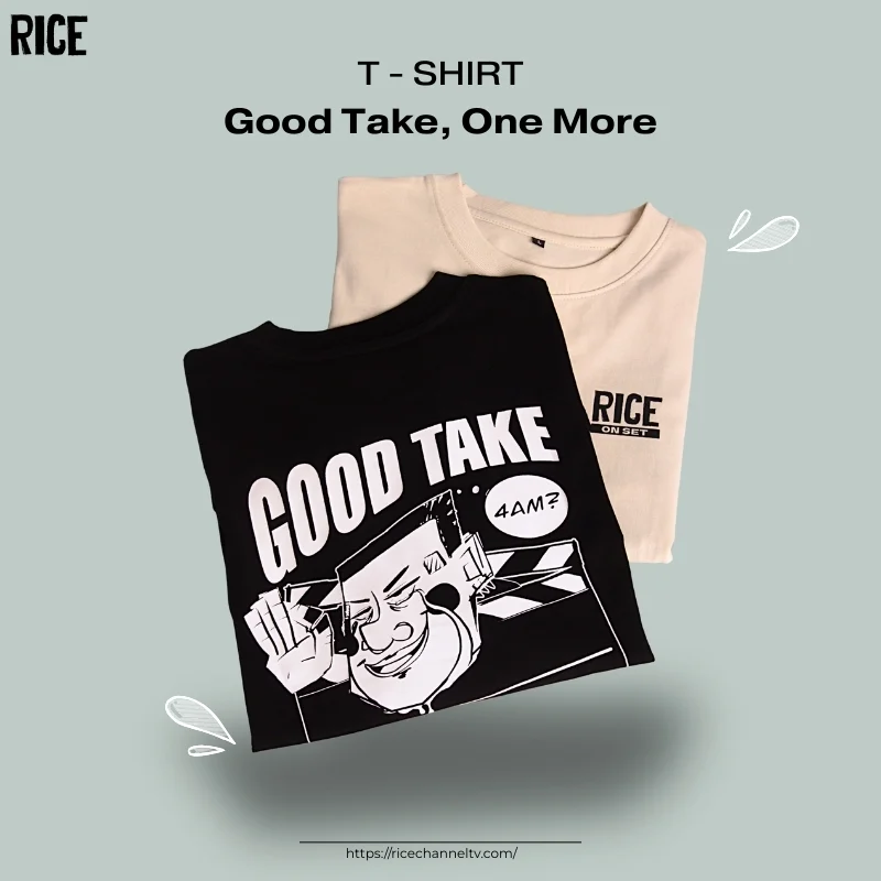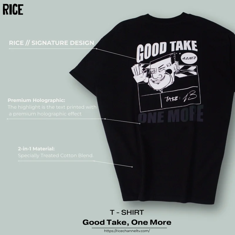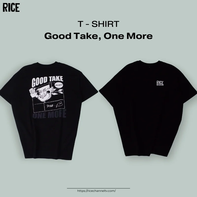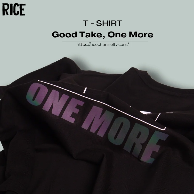 Thiết kế độc quyền mang dấu ấn RICE Lấy cảm hứng từ không khí làm việc hăng say trên phim trường, artwork “Good Take” là thiết kế độc quyền mang đậm bản sắc sáng tạo của RICE. Điểm nhấn đắt giá nằm ở dòng chữ “ONE MORE” được in hiệu ứng Hologram cao cấp. Chi tiết này có khả năng chuyển màu lấp lánh theo từng góc nhìn và ánh sáng, tạo nên hiệu ứng thị giác độc đáo và nổi bật trong mọi khung hình.